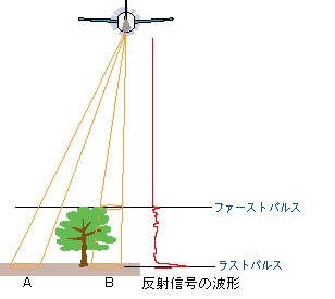 レーザ光の樹木や地表面での反射の様子(国土地理院ホームページより)