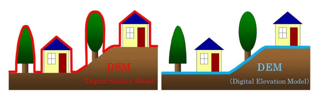 DSMイメージとDEMイメージ(国土地理院ホームページより)